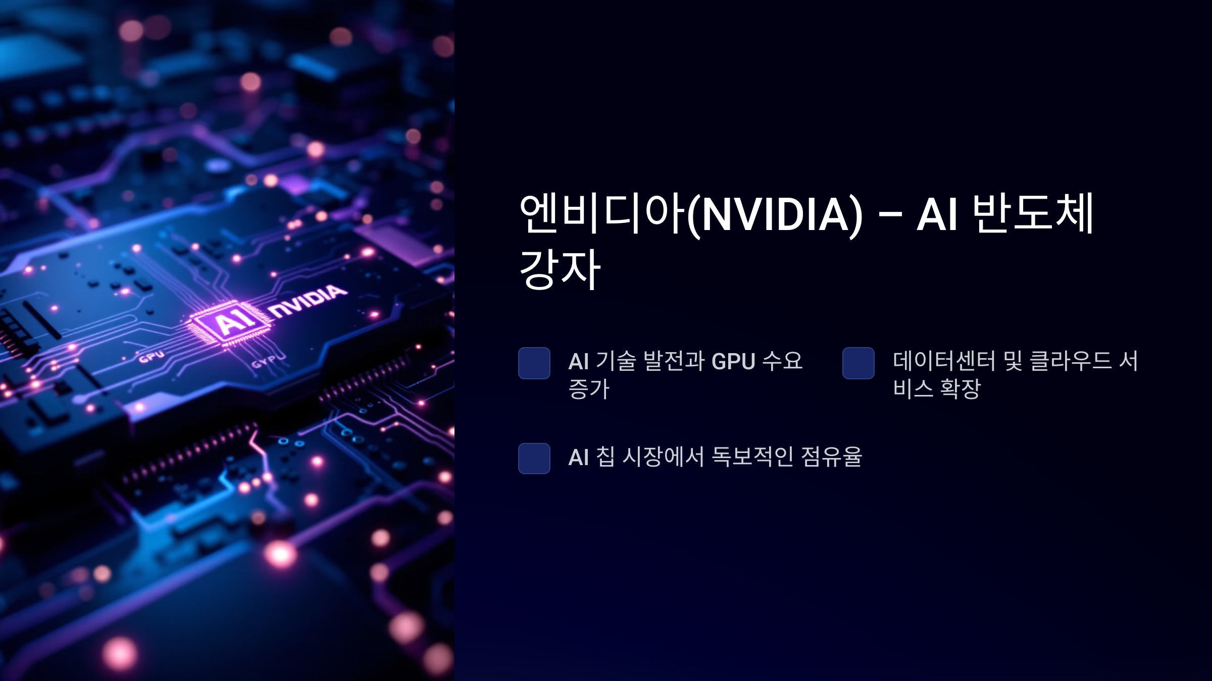 1. 엔비디아(NVIDIA) – AI 반도체 강자