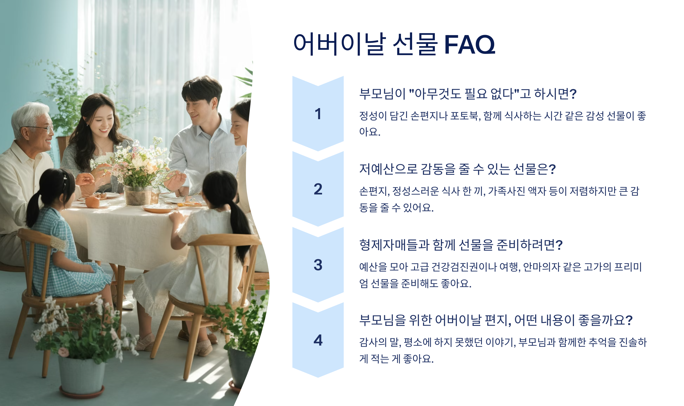 Q1. 부모님이 “아무것도 필요 없다”고 하시면 뭘 드리는 게 좋을까요?