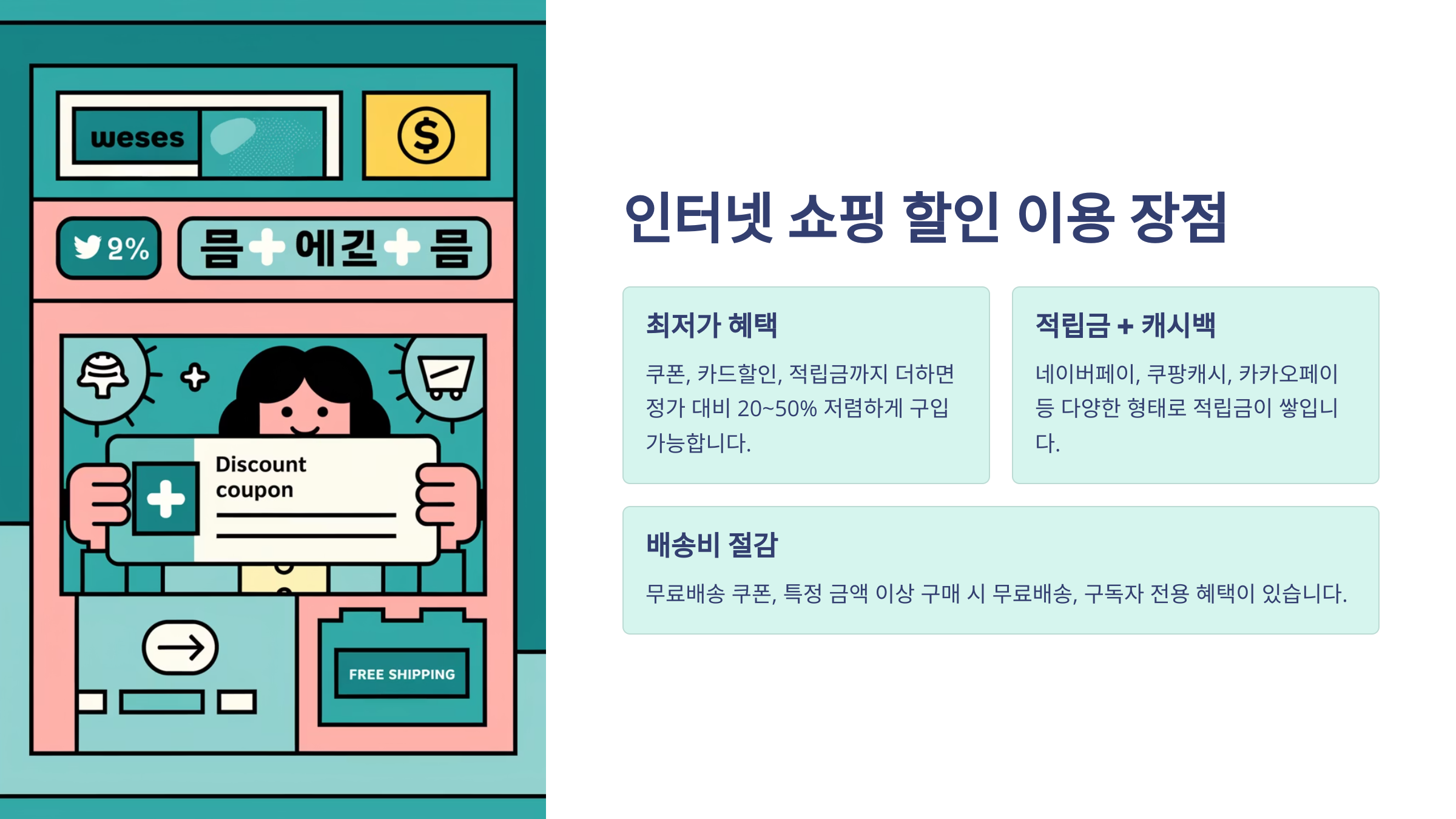 이제 다음 섹션에서는 인터넷 쇼핑 할인의 구체적인 장점을 정리해서 알려줄게요! 🧡