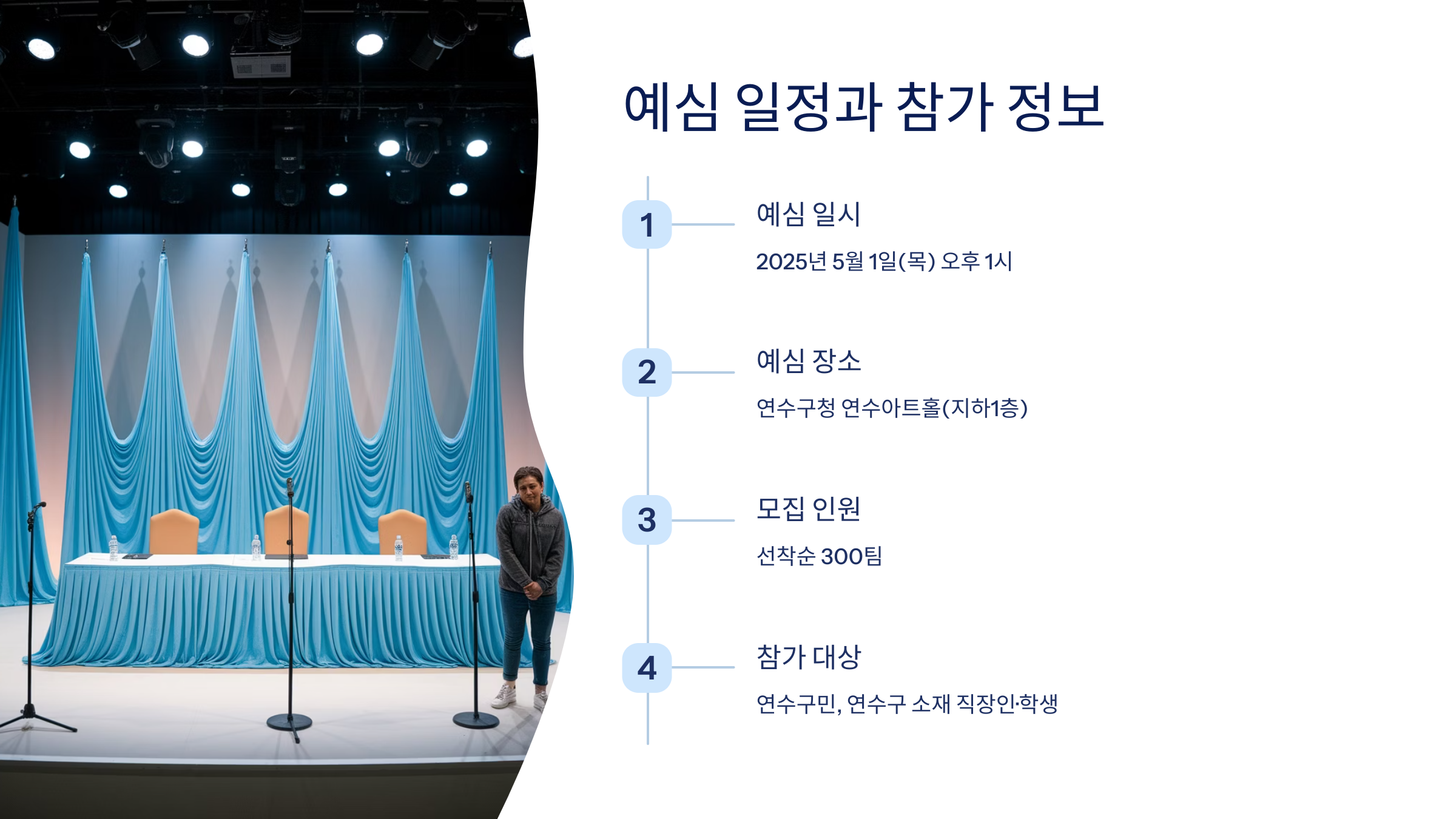 | 2025년 5월 1일(목) 오후 1시 | 연수구청 연수아트홀(지하1층) | 선착순 300팀 |