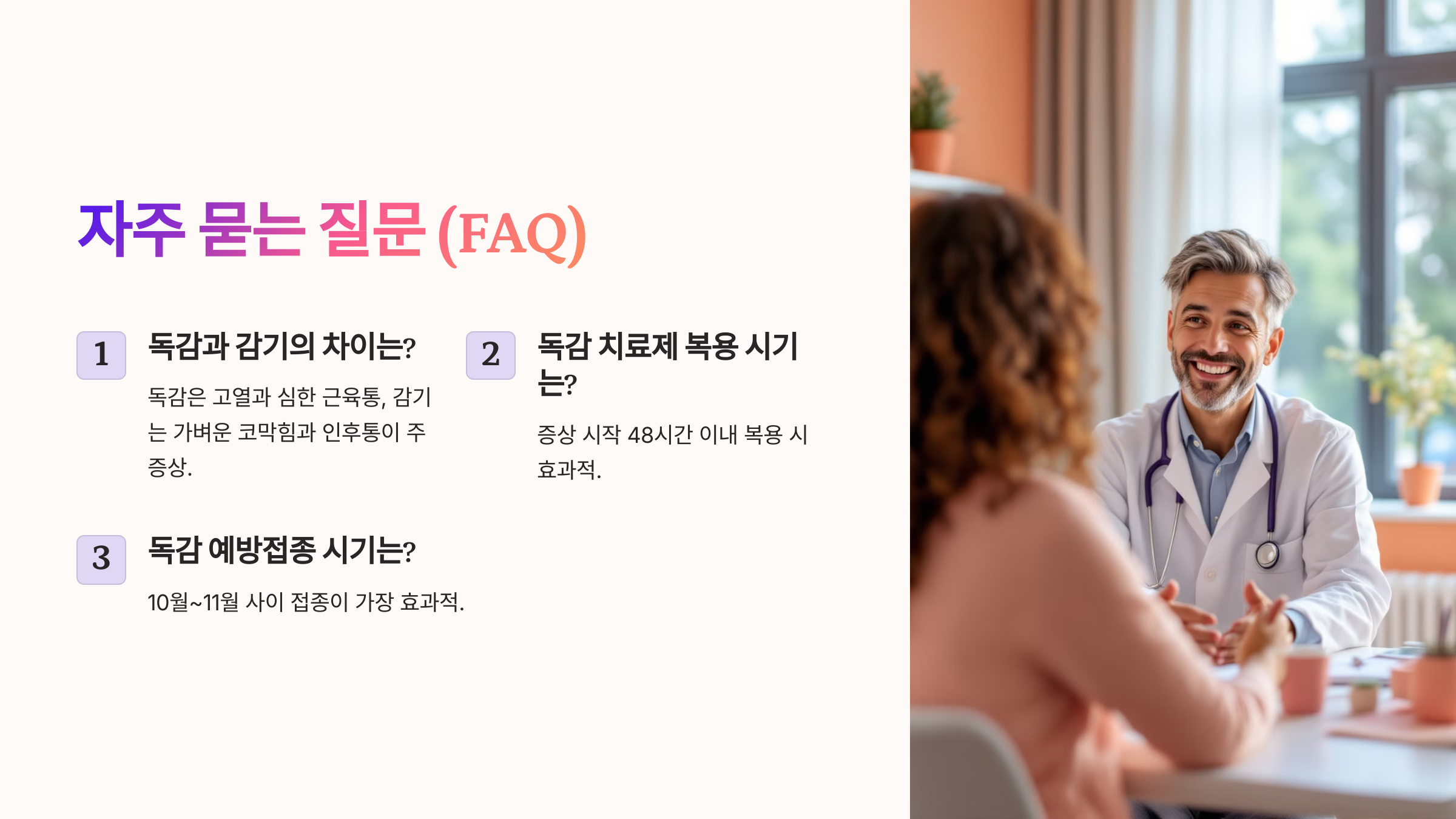 이제 독감의 모든 차이점을 정리했어요! 마지막으로 자주 묻는 질문(FAQ)을 확인해볼까요? 🔍