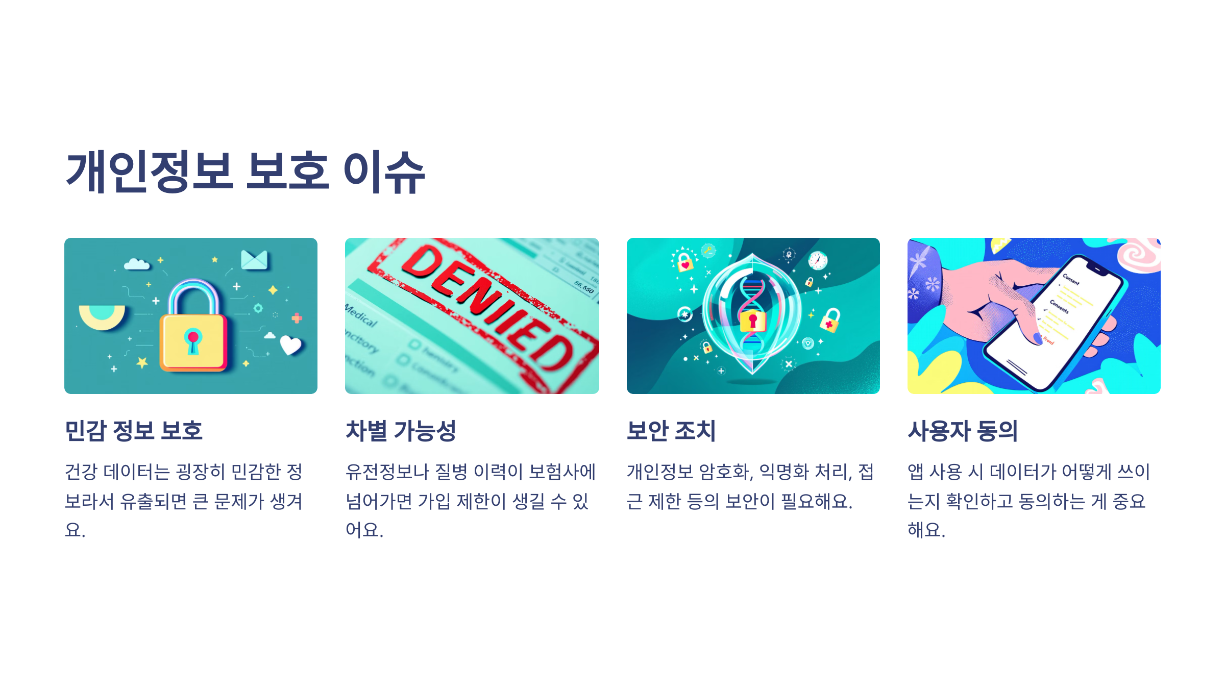 AI 헬스케어가 발전하면서 동시에 중요해진 주제가 바로 '개인정보 보호'예요. 건강 데이터는 굉장히 민감한 정보라서, 유출되거나 오남용되면 큰 문제가 생길 수 있거든요.
