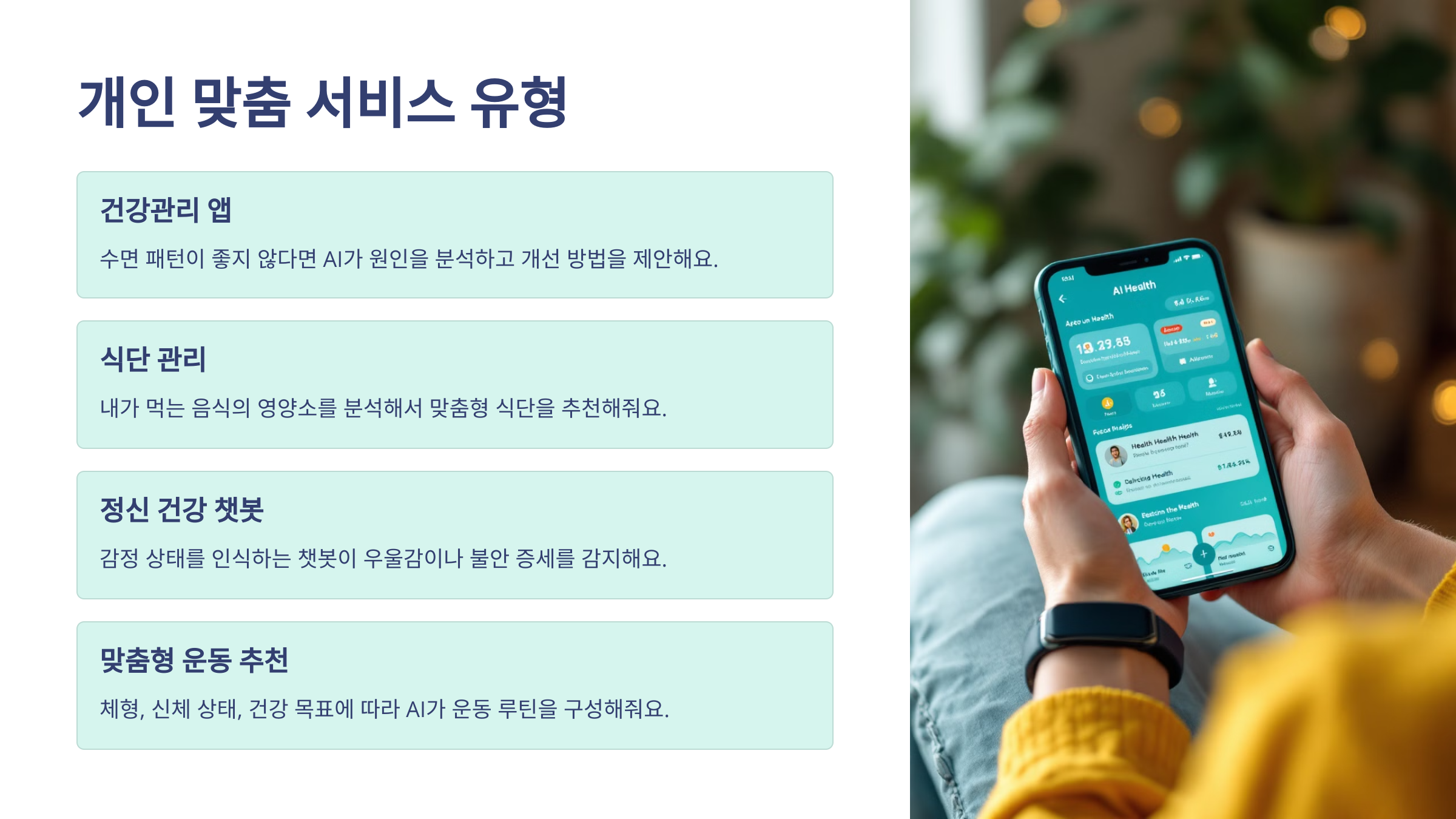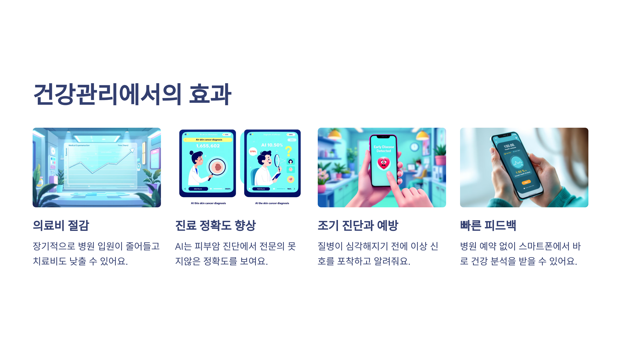 AI 헬스케어의 가장 큰 장점은 '빠른 피드백'이에요. 병원 예약을 기다릴 필요 없이, 스마트폰에서 바로 건강 분석을 받을 수 있으니까요. 이건 특히 바쁜 현대인에게 엄청난 이점이죠!