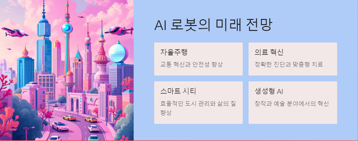 AI 로봇의 미래는 기술 발전에 따라 더욱 밝아질 것입니다.