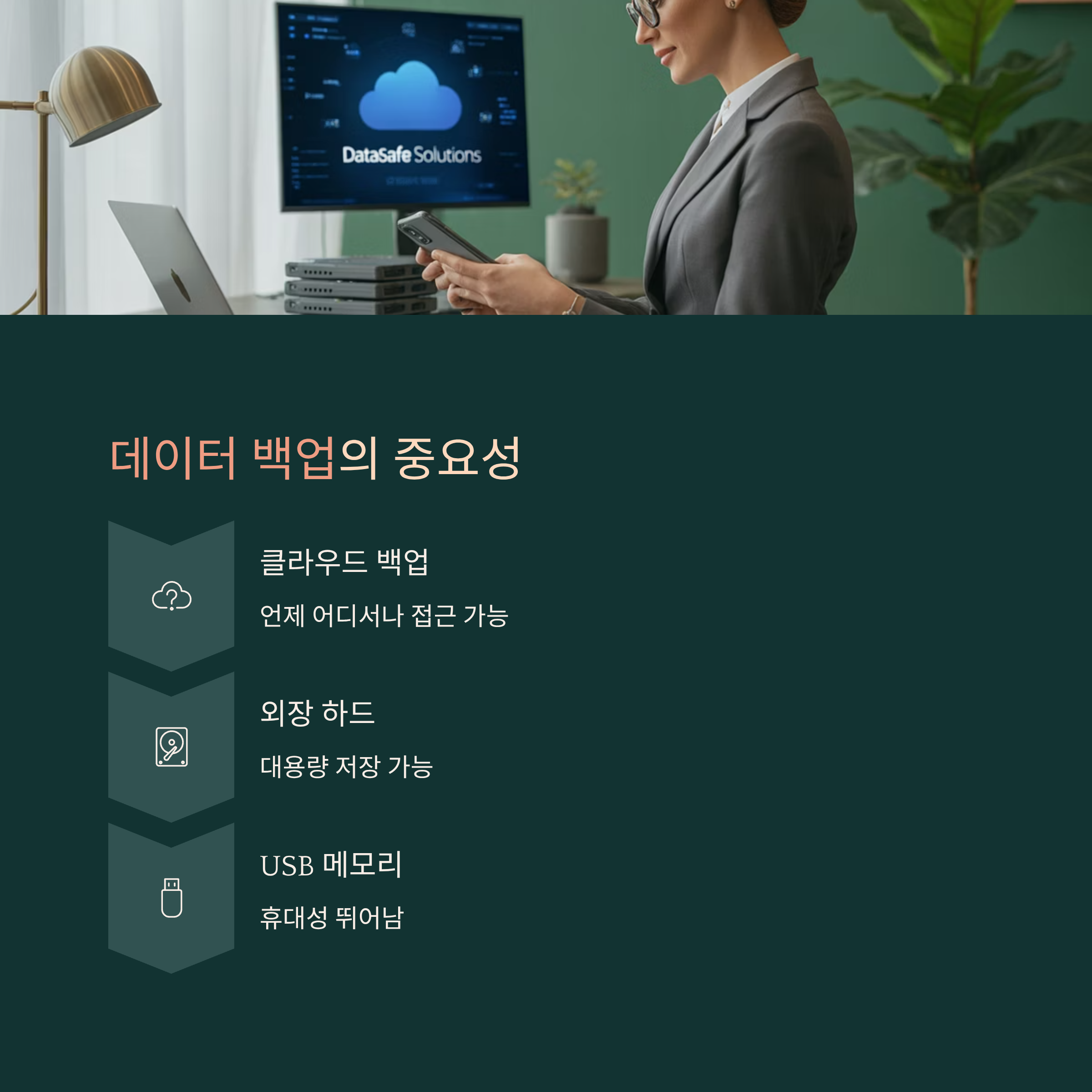 | USB 메모리 | 간단하고 휴대성 뛰어남 | 저장 용량 한계 |