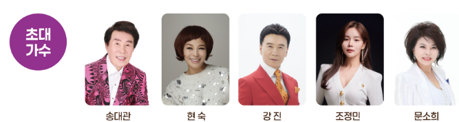 - 초대가수 공연 즐기기: 송대관, 현숙 등 인기 트로트 가수들의 무대를 놓치지 마세요.