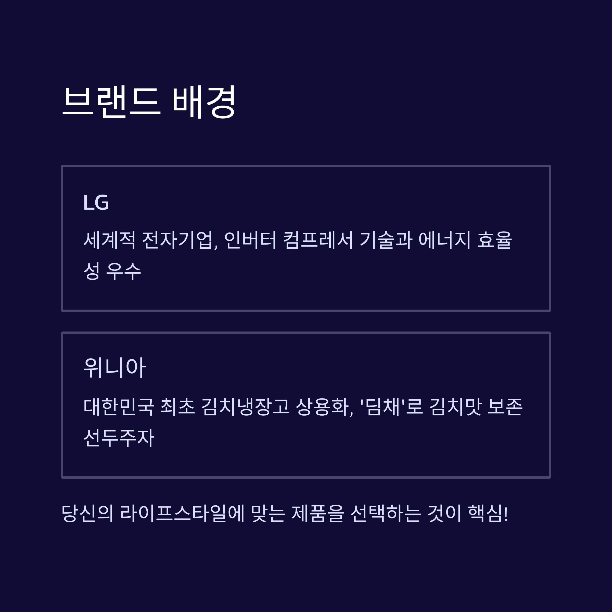 | 주요 강점 | 기술력, 스마트 기능 | 김치 보관 최적화 |